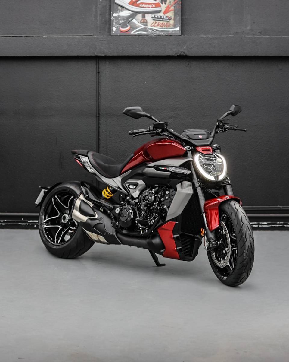 Cette Ducati XDiavel V4 illustre parfaitement la synergie entre protection et esthétique. Confiez votre moto à notre atelier à Saint Cyr l’école pour bénéficier d’une pose experte de film XPEL Fusion et d’un traitement céramique Krytex sur mesure. Contactez-nous dès aujourd’hui pour un diagnostic personnalisé et une protection haut de gamme adaptée à votre machine.